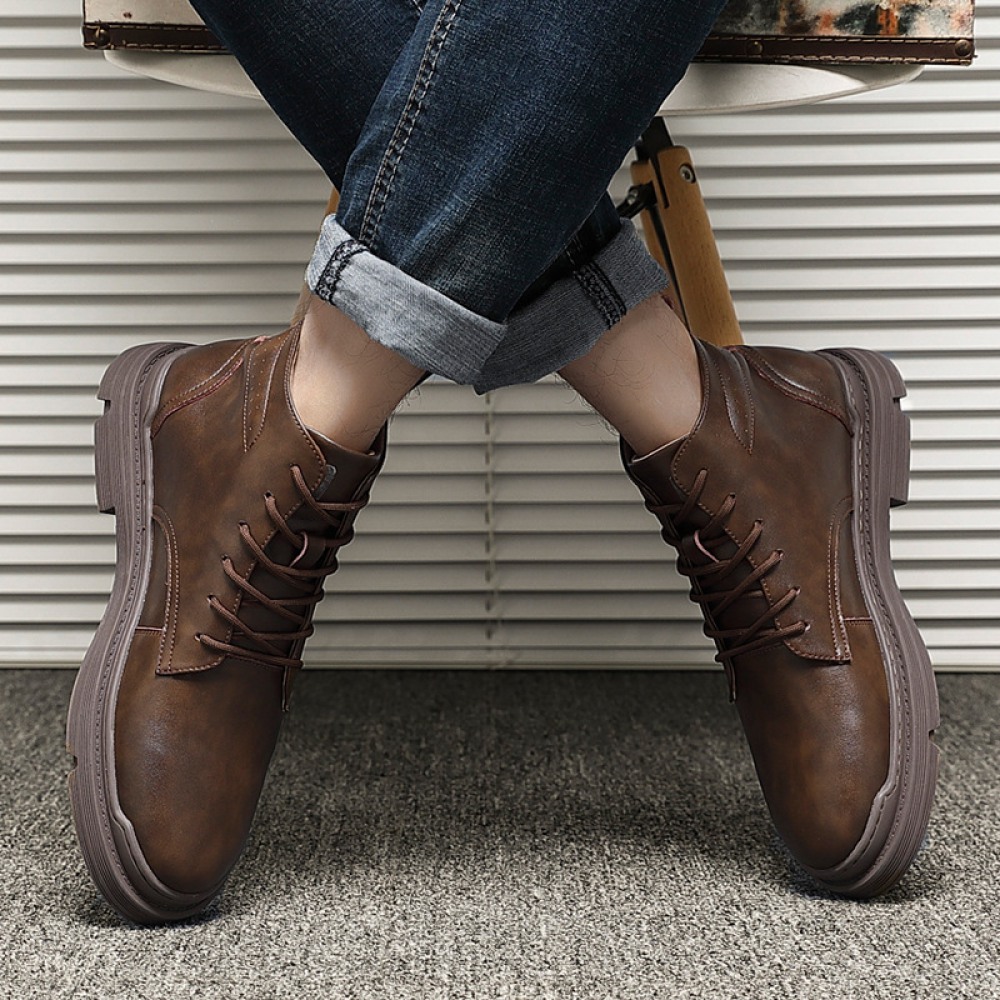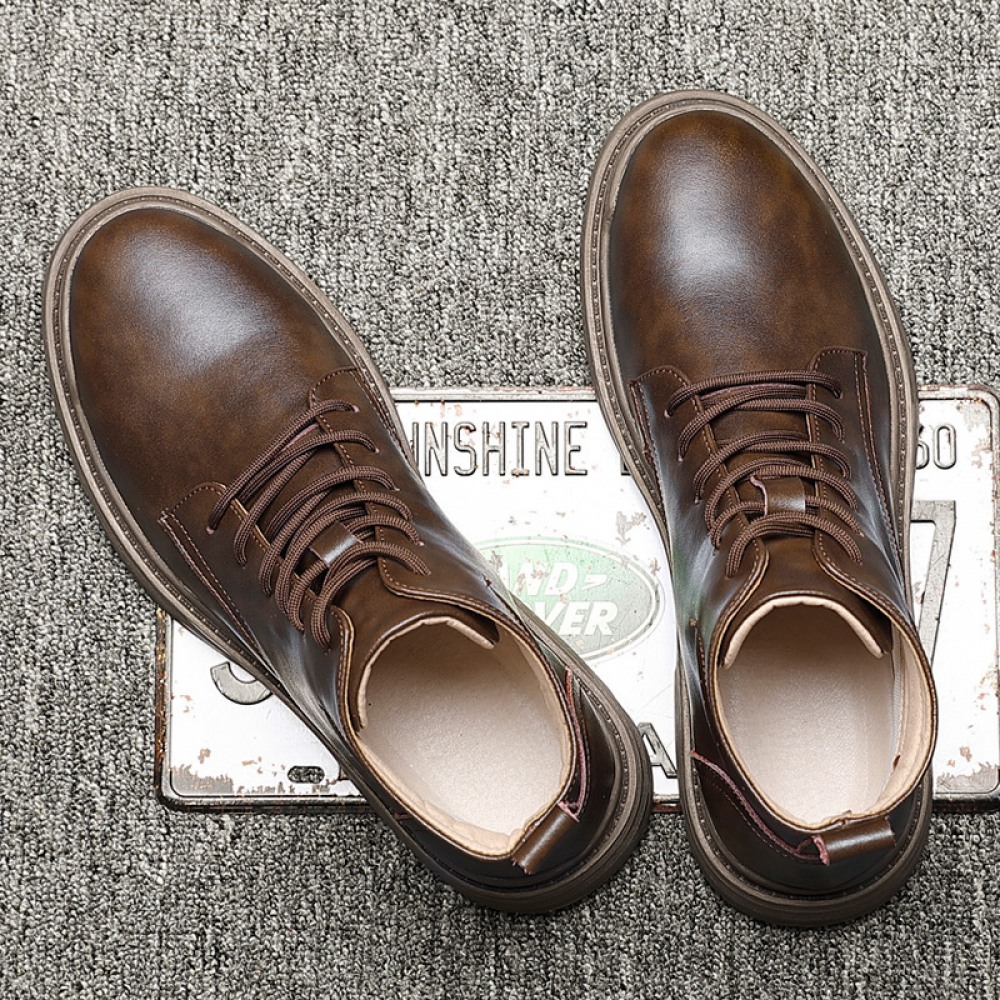 Martin Boots Men's Breathable High-Top Leather Shoes Middle Cut Mens Boots Tooling Boots Leather Boots Leather Short Boots