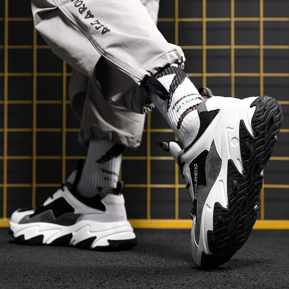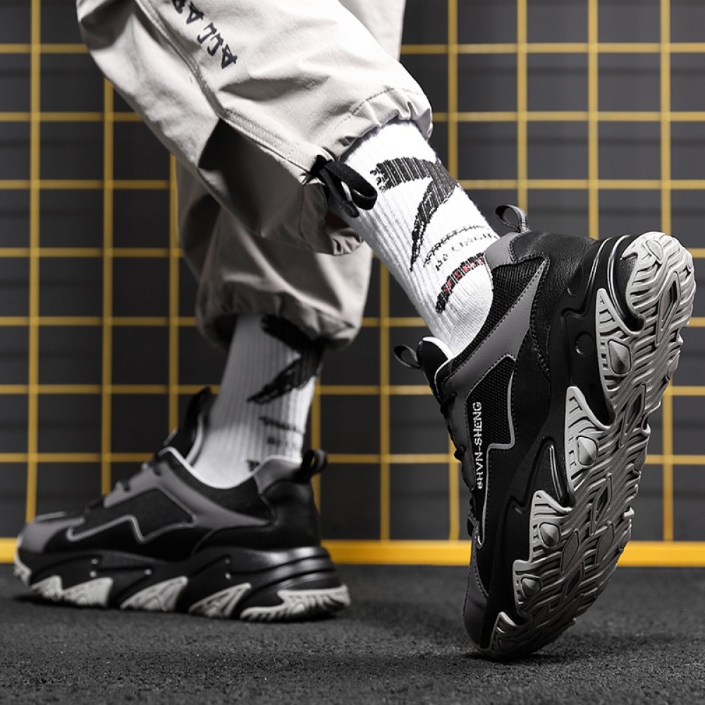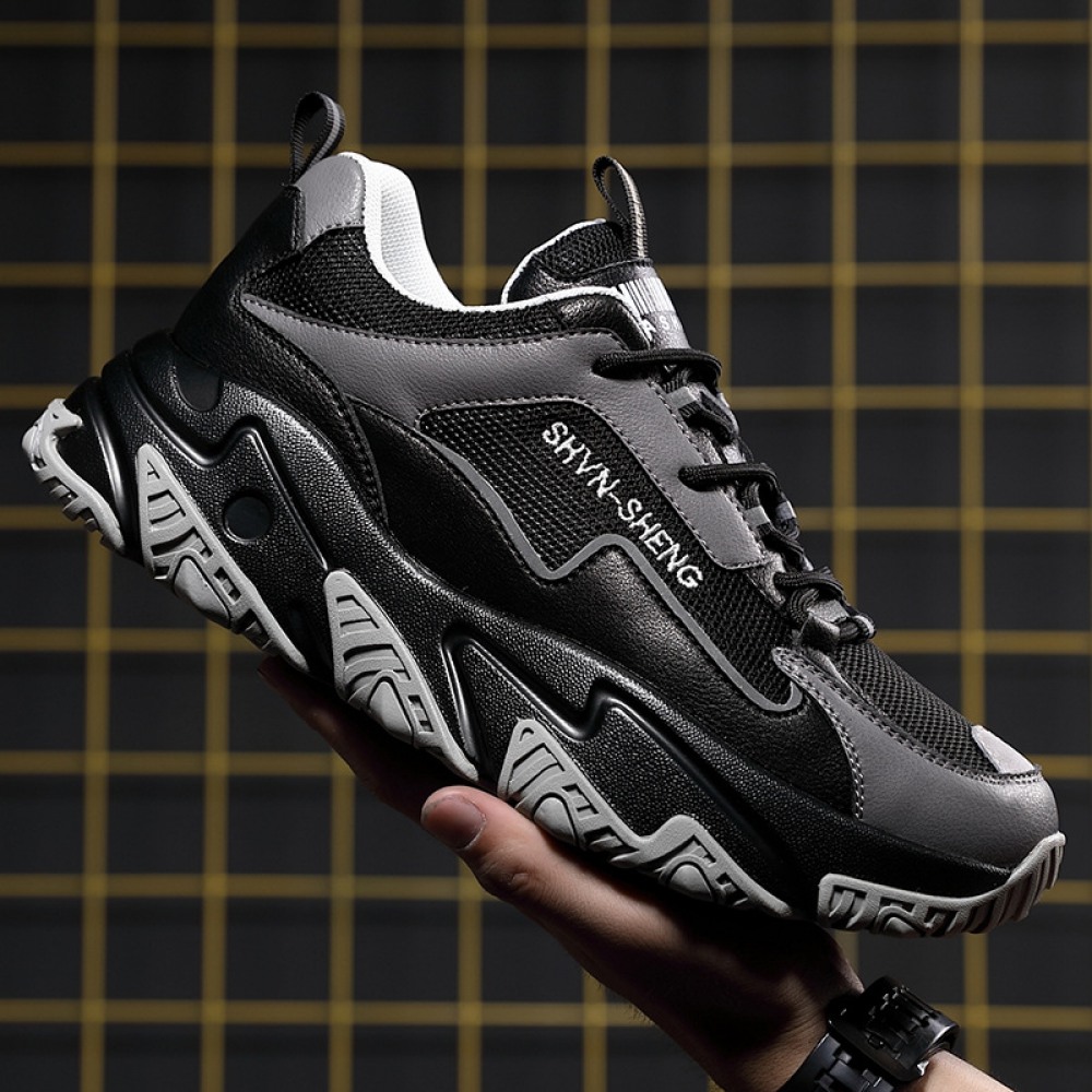 Men's Round Head Shoes Front Lace-Up Mid-Heel Casual Men's Sports Single Shoes