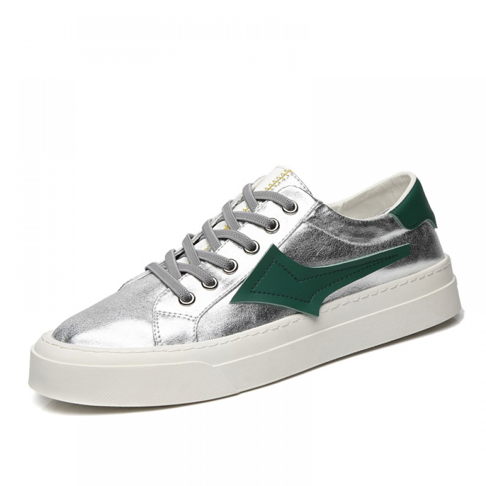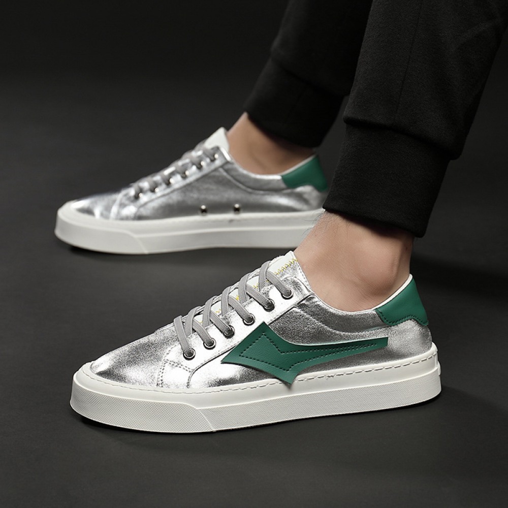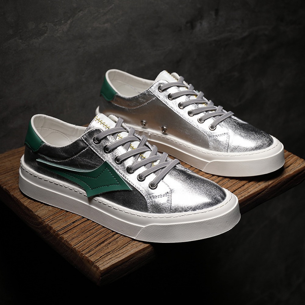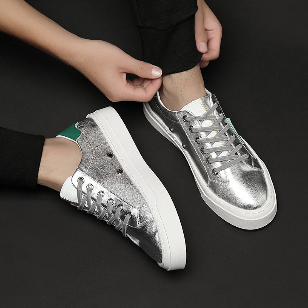 Men's Shoes Trend Autumn New Low-Cut Lace-Up Sneakers Casual Style Shoes Breathable Cloth Shoes Silver Shoes
